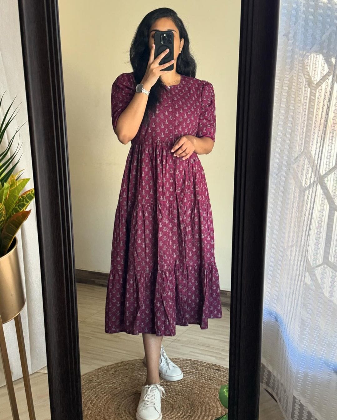 Beautiful printed Lotus flower cotton meternity friendly maxi