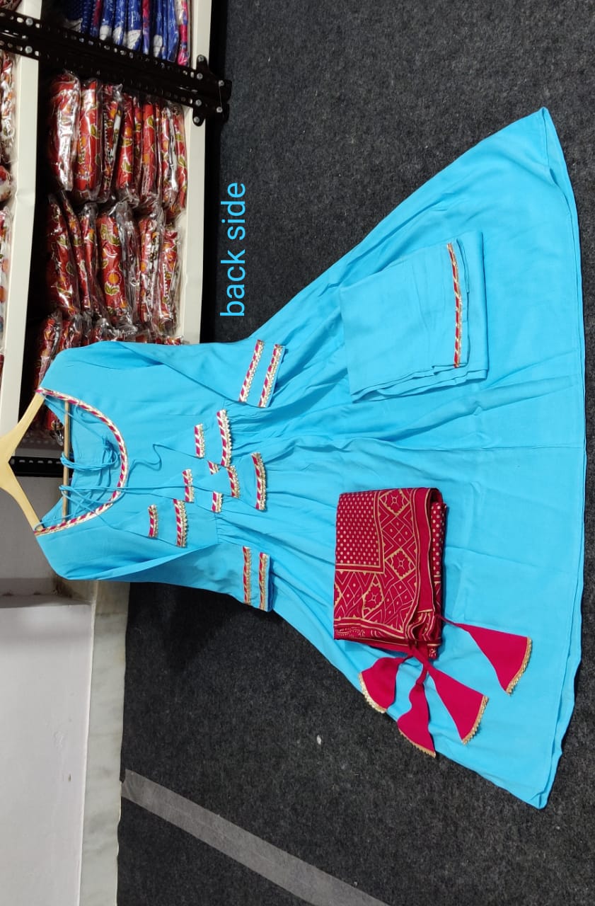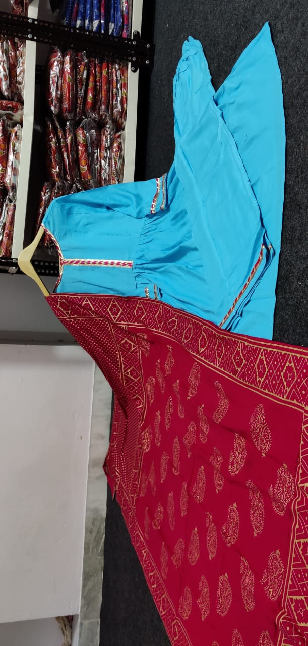 This summer session wear the party look full flair kurti palazzo with amazing Gold dupatta